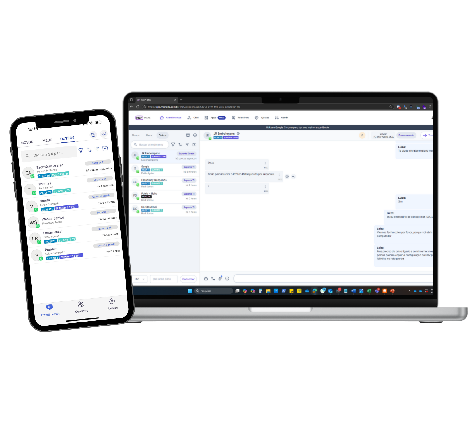 O MSP Works é a junção de duas plataformas poderosas – MSP Desk + MSP Talks – criadas sob medida para empresas de tecnologia que precisam organizar o suporte, atender melhor seus clientes e gerar resultados reais.